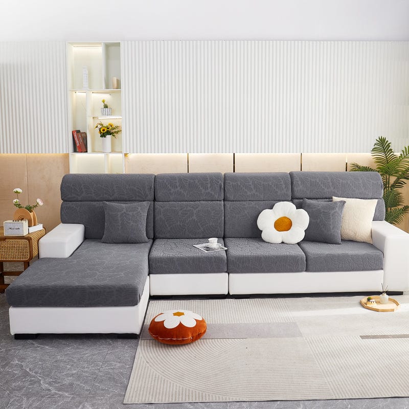 EasyDrap™ Gris - Housse polaire pour coussins de canapé - Motif Palmier