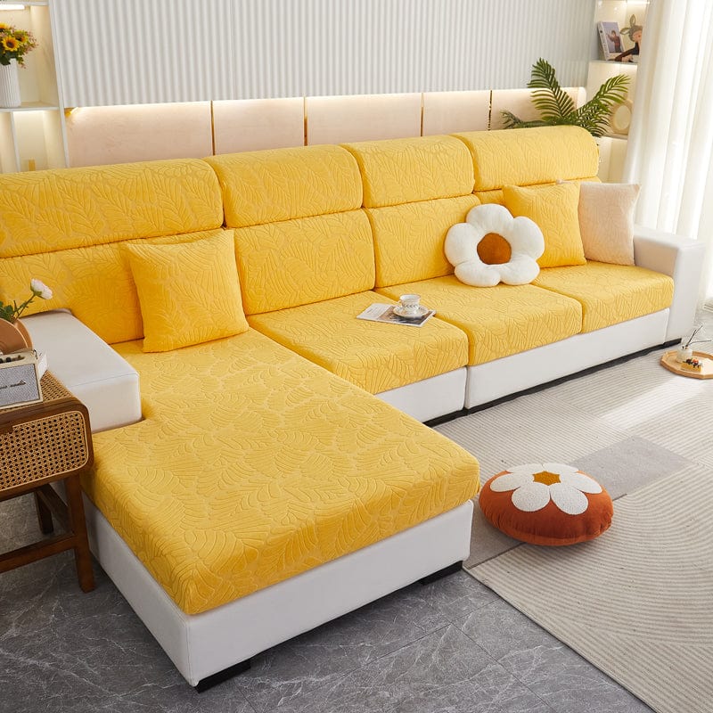 EasyDrap™ Jaune - Housse polaire pour coussins de canapé - Motif Palmier