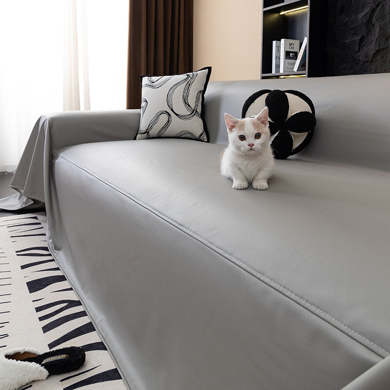 Jeté de Canapé en Simili Cuir Imperméable Gris Clair
