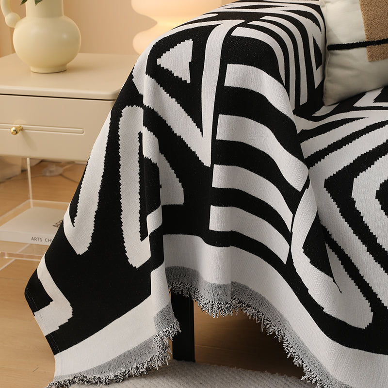 Jeté de Canapé Tissé Tribal Noir